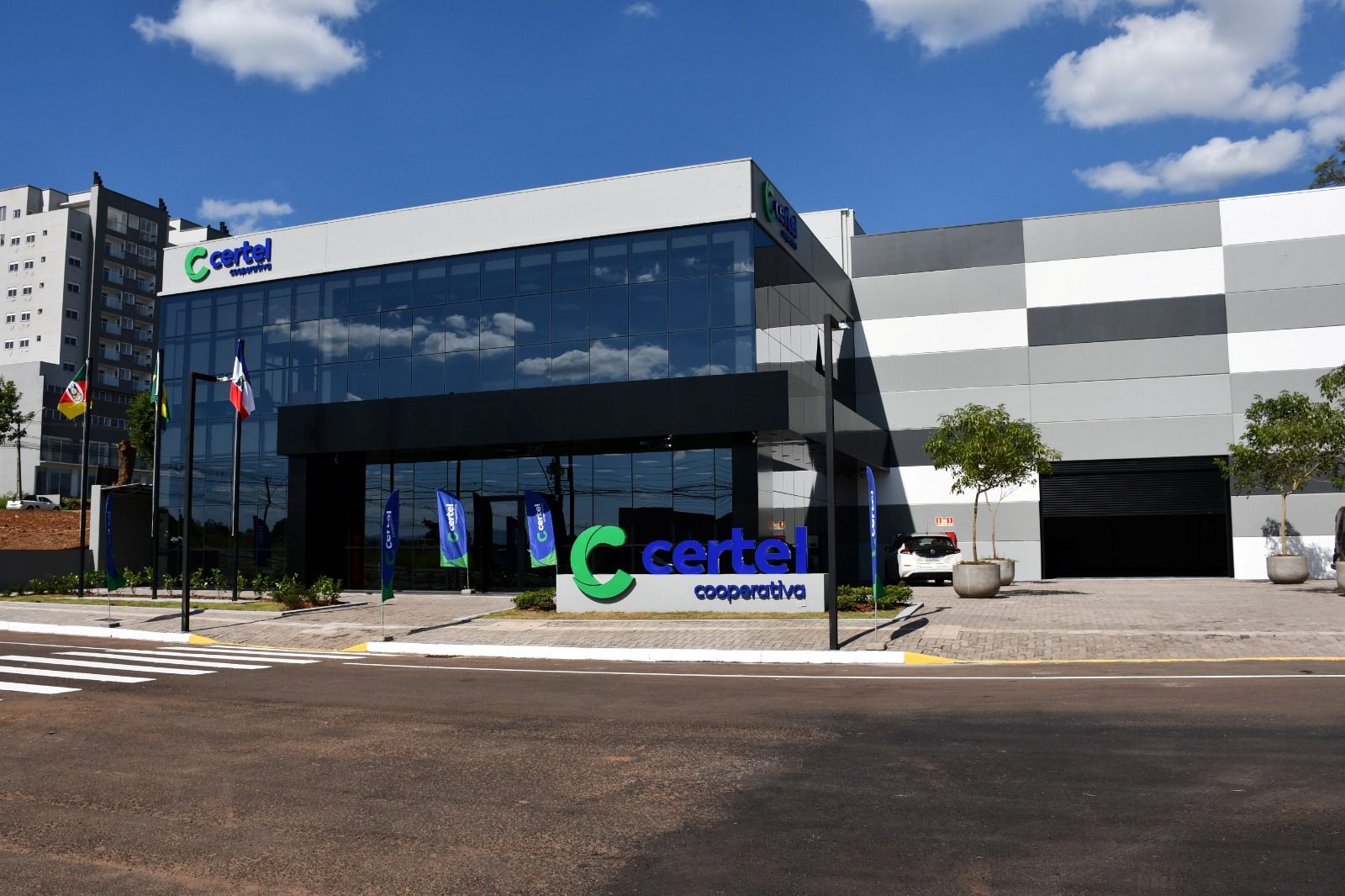 A Certel inaugurou na sexta-feira, dia 27, integrando programação do seu aniversário de 70 anos, a nova sede operacional de Lajeado. Localizado na Avenida dos Ipês, 1170, no Bairro Montanha, o local representa um marco para a qualidade do atendimento aos associados. Numa área total construída de 2.561,86 m² e investimento de R$ 12 milhões – numa parceria intercooperativa com os Sicredis de Lajeado e Teutônia –, a sede já inicia suas atividades com mais de 50 profissionais capacitados, entre equipes de construção, atendimento emergencial e administrativa.