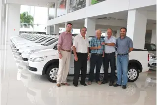 Com o objetivo de renovar parte da frota de veículos da cooperativa, o presidente da Certel, Egon Édio Hoerlle, e o vice-presidente, Erineo José Hennemann, estiveram, na tarde do dia 20 de fevereiro, na sede da concessionária Spengler, em Santa Cruz do Sul. A cooperativa adquiriu 11 veículos utilitários Saveiros. A entrega das chaves foi feita pelo diretor comercial, Guido Alfredo Halmenschlager, pelo diretor financeiro, Claudio Spengler e pelo gerente de vendas, Emerson Haas.
