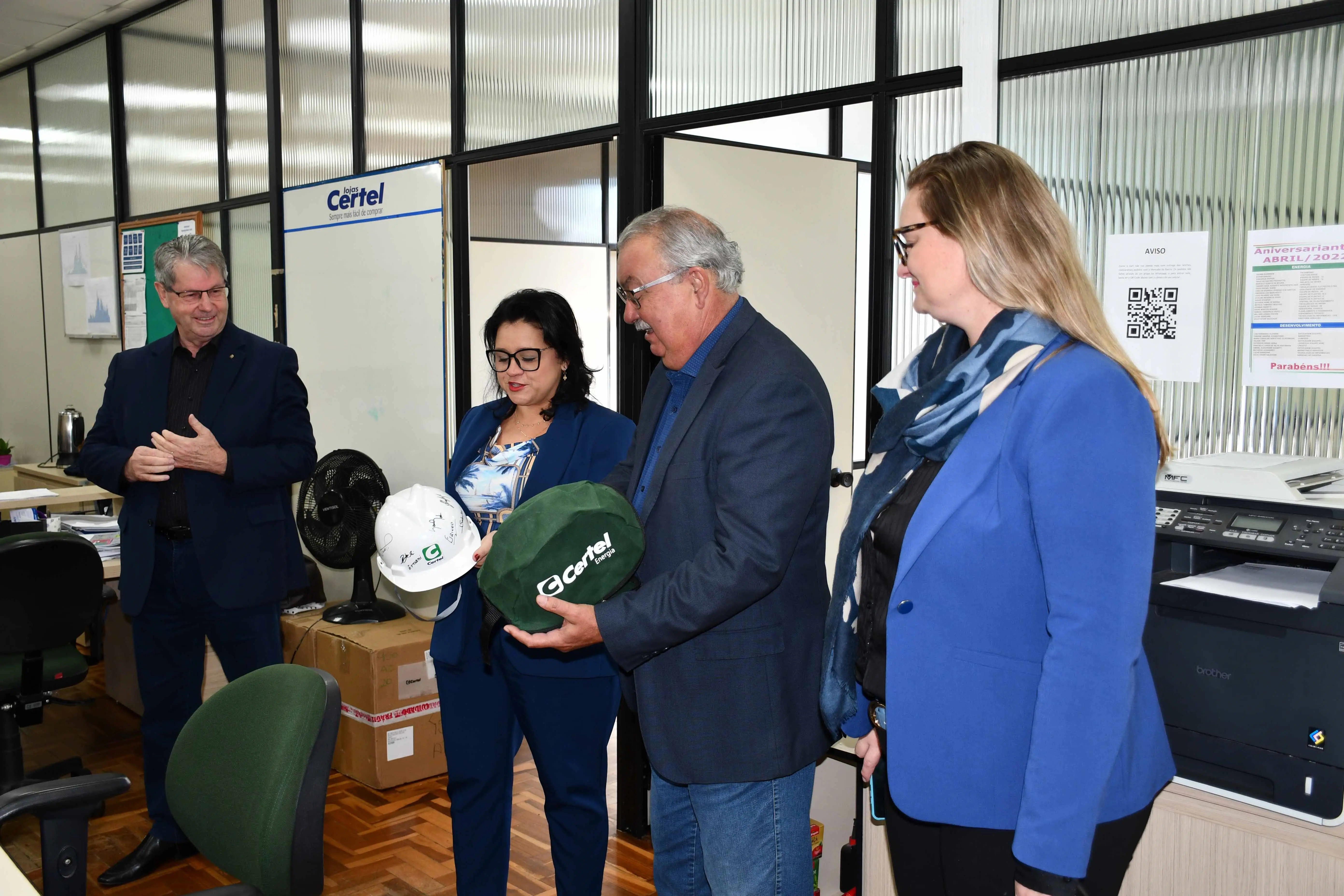 Marjorie recebeu do presidente um capacete assinado pelos diretores da Certel, em reconhecimento a sua trajetória. “É sempre um prazer estar com a Certel, e hoje, em especial, aqui na matriz. Conseguimos um momento na agenda para conversar um pouco sobre nossa atuação na Fepam e, agora, em frente à Secretaria de Meio Ambiente e Infraestrutura. Tratamos sobre as perspectivas da Cooperativa para os próximos anos. Fiz questão de estar aqui, pois é importante que as pessoas nos conheçam e que nós conheçamos também o trabalho das pessoas”, relatou.