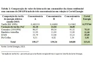 Confira o exemplo na tabela, referente ao consumo de energia de um usuário da classe residencial de 200 quilowatt-hora (kWh) ao mês, em comparação a outras empresas. É possível verificar que o valor da tarifa da cooperativa é até 32% menor que o das concessionárias.