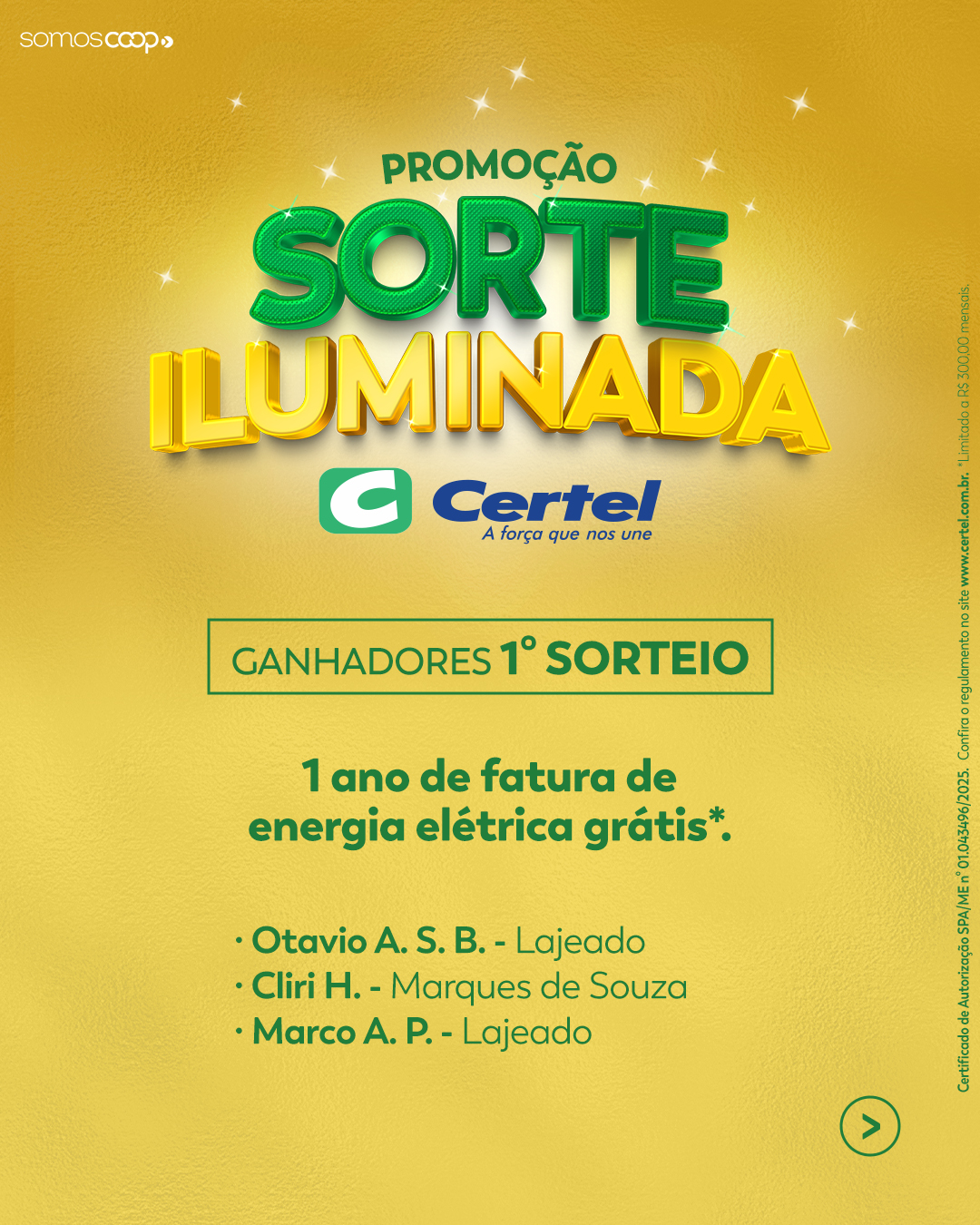 29522 | MARCO A. P. | LAJEADO | 365.xxx.xxx-06 | Um ano de fatura de energia grátis |