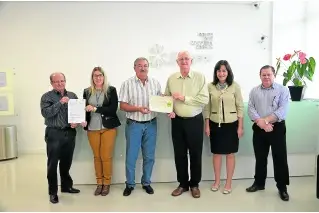 A Sicredi Ouro Branco recebeu, no dia 7 de abril, mais um selo Carbono Neutro do programa Energia Verde em Harmonia Ambiental, desenvolvido pela Certel. O presidente, Silvo Landmeier, acompanhado do vice-presidente, Inácio Berwanger, do diretor executivo, Neori Ernani Abel, e da assessora de relacionamento, Margarete Mallmann, recebeu a certificação do presidente da Certel, Erineo Hennemann, e da engenheira ambiental do Departamento de Meio Ambiente, Tatiana da Costa.
